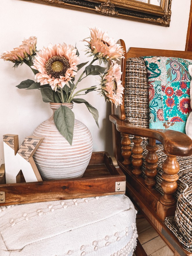 - Find pieces for your home that can be utilized in different ways. I hardly ever move my “foundation” pieces- I decorate around them. For example, have neutral vases that look good in your space all year and then change out the floral arrangements for the seasons.