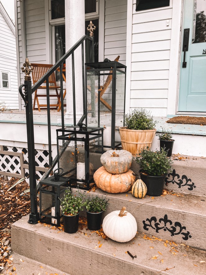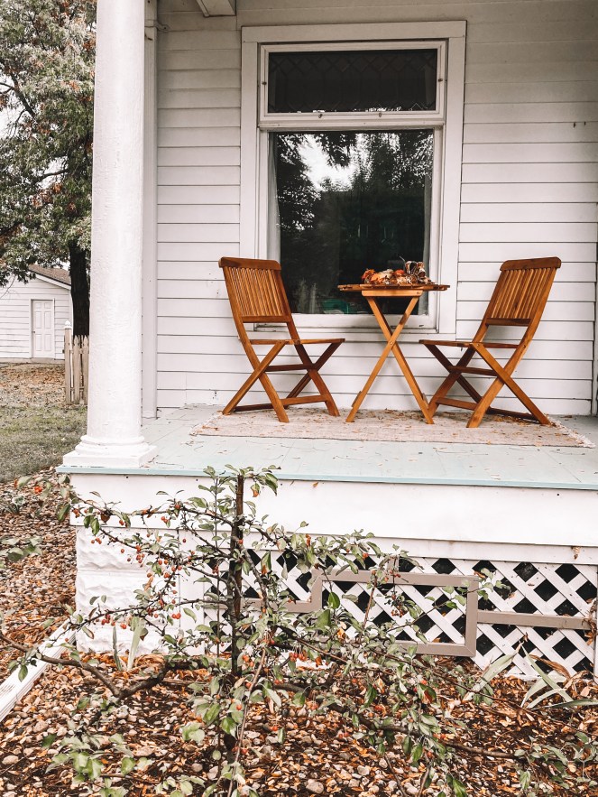 The leaves are turning quickly here in southeastern Wisconsin and I’m loving it! Decorating for Fall is one of my favorite things to do, especially when I get to decorate our porch. I’ve always wanted a front porch where I could get a cozy chair and table set on and able to relax on at the end of the day, and this house finally delivered! I guess third time’s the charm! My decorating style inside and outside tends to be simple- I like to add cute touches here and there but I don’t like overwhelming a space, especially since I don’t have a lot of storage. Here are few tips on how to make your porch look Fall festive while keeping it simple!