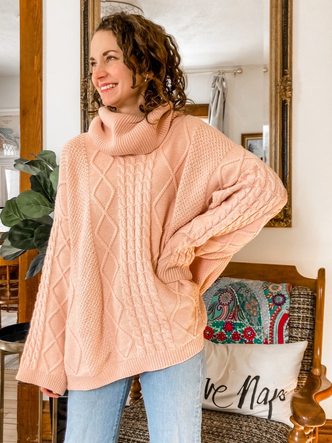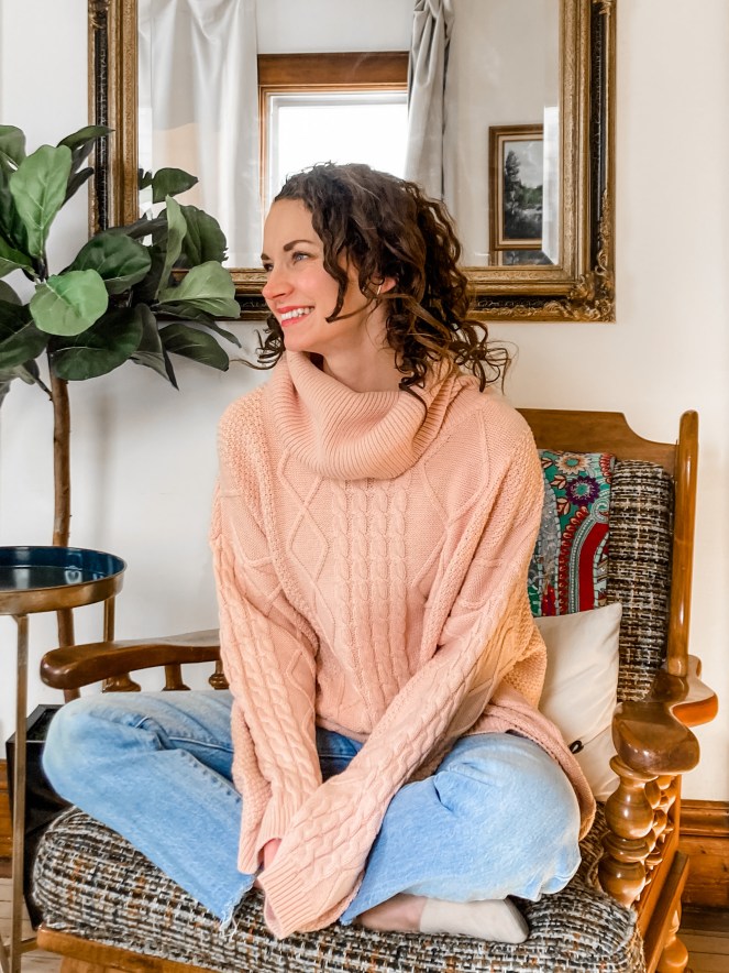 The perfect outfit for an at home, super casual Valentine’s Day is a cute and cozy sweater in a festive color, your favorite pair of jeans and a comfortable pair of shoes! I love the girly and casual fit of this pink sweater (similar styles here and here, wearing size S) paired with my flattering and comfortable Levi’s Wedgie High Waist Jeans (this year’s version, wearing size 23) and Birdies the Heron flats! You’ll feel cute and comfy in this simple and classic outfit while enjoying some alone time with your special loved one. (For reference, I am 5’0″ tall and 95lbs).