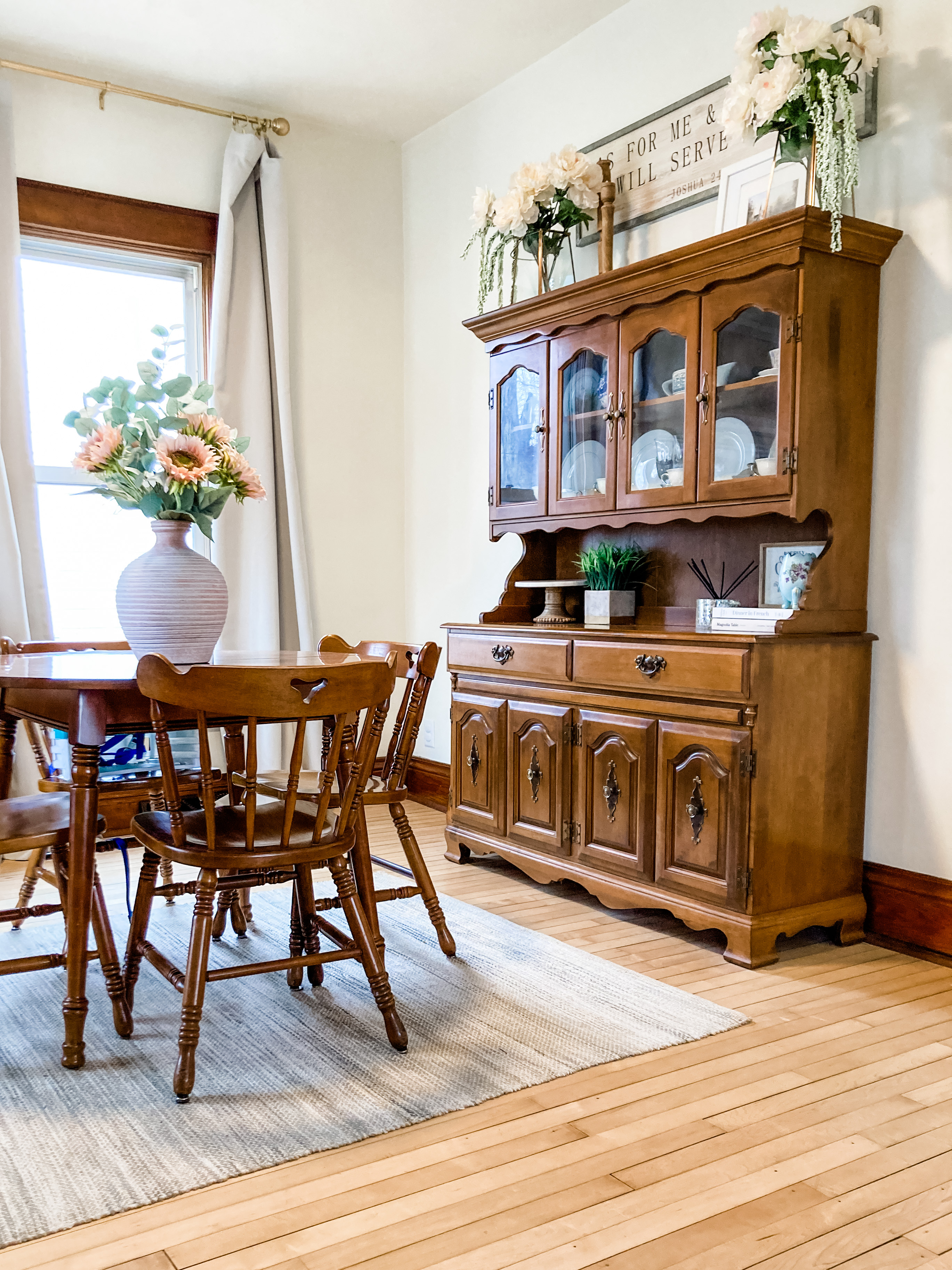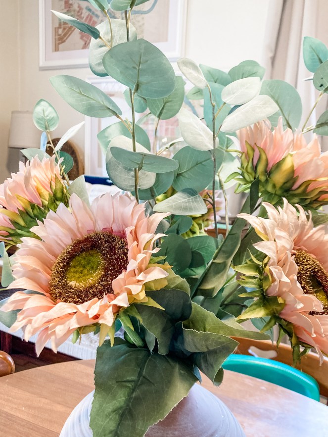 - Add a floral arrangement! Again, this can be real or faux. A simple Spring arrangement in the center of your dining table always looks great and is quick to move out of the way when needed!