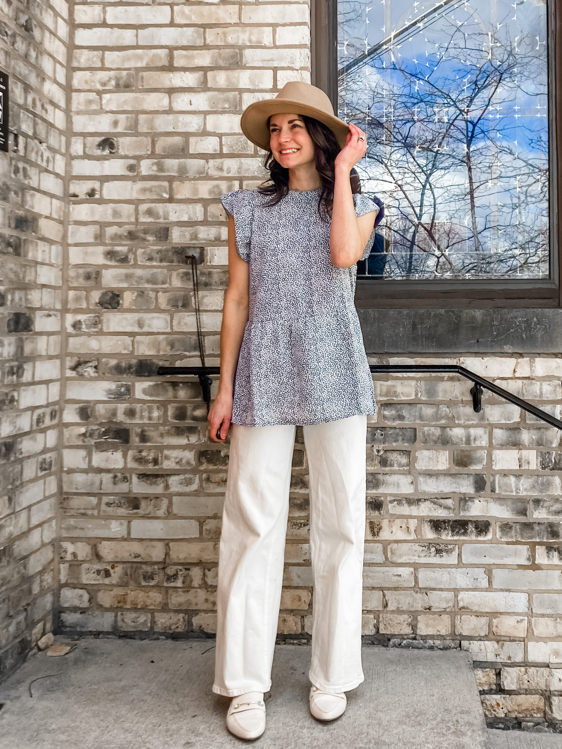 #1. Angashion Ruffle Sleeve Top, wearing size S
