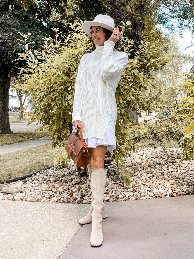 #4. Tired of skinny jeans but still want to wear an oversized sweater? Try pairing it with a dress like I did here!