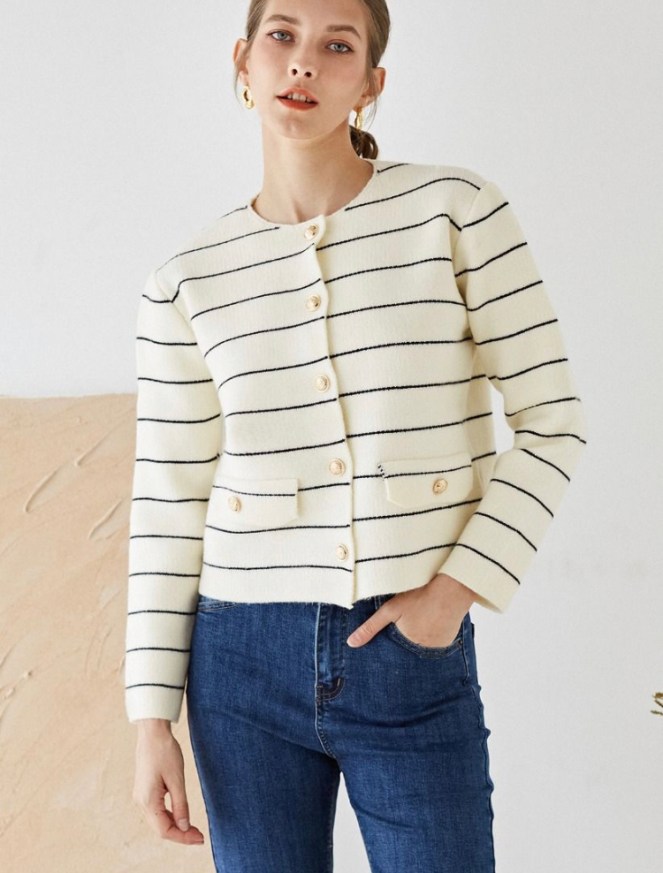 #3. Chicwish Contrast Stripes Button Down Cardigan, wearing size S/M, cropped fit, order your usual size