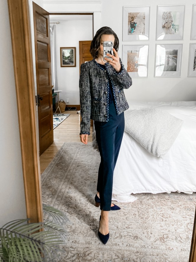 #5. Loft Petite Cropped Tweed Jacket– wearing size 00 petite, order your usual size, linked similar style here