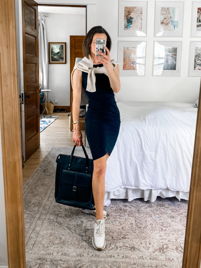 #5. Treasure & Bond Ruched Side Sleeveless Dress– wearing size XS, old style, linked similar