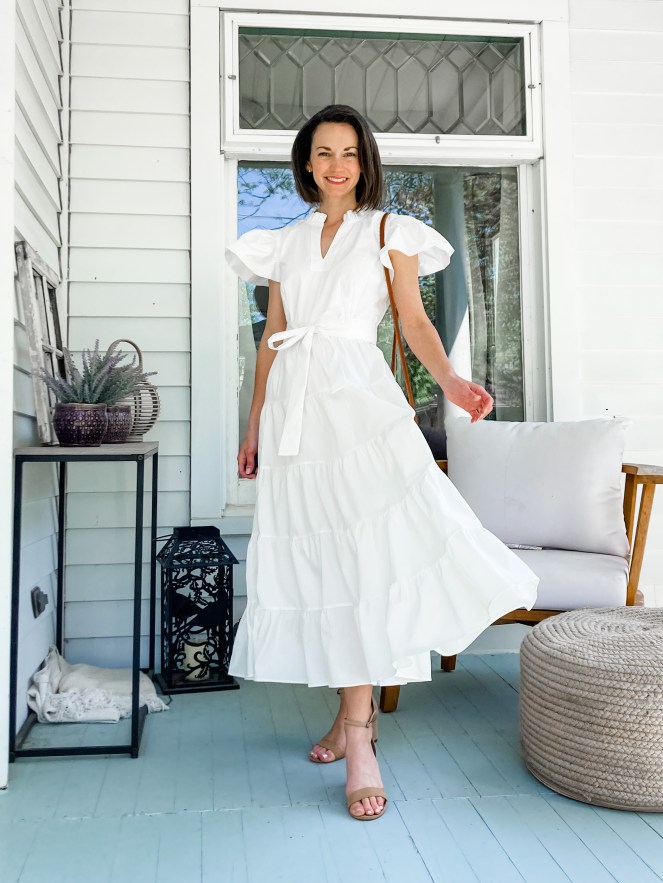 #2. Chicwish V-Neck Flutter Sleeve Ruffle Cotton Dress– wearing size XS, 100% cotton, order your usual size