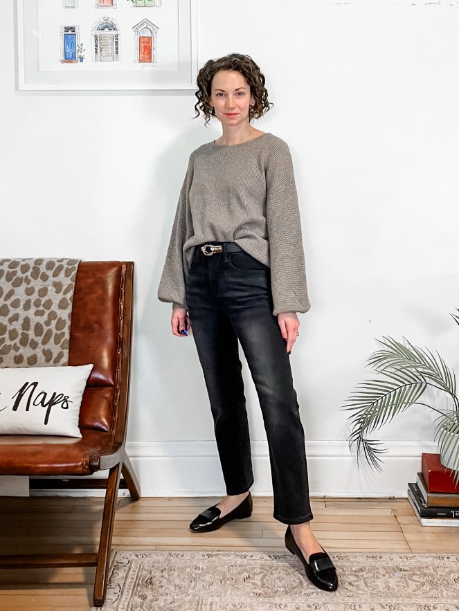 #1. I paired the Nori Textured Sleeve Pullover with the Lysette Straight Leg Jeans and I am in love! This sweater/jean combo is the perfect casual chic look. The sweater is buttery soft and the jeans are very comfortable. I’m wearing size XXSP/XXS sweater and 24P jeans. For reference, I am 5’0″ tall and 95lbs.
