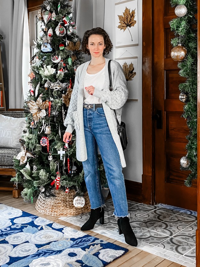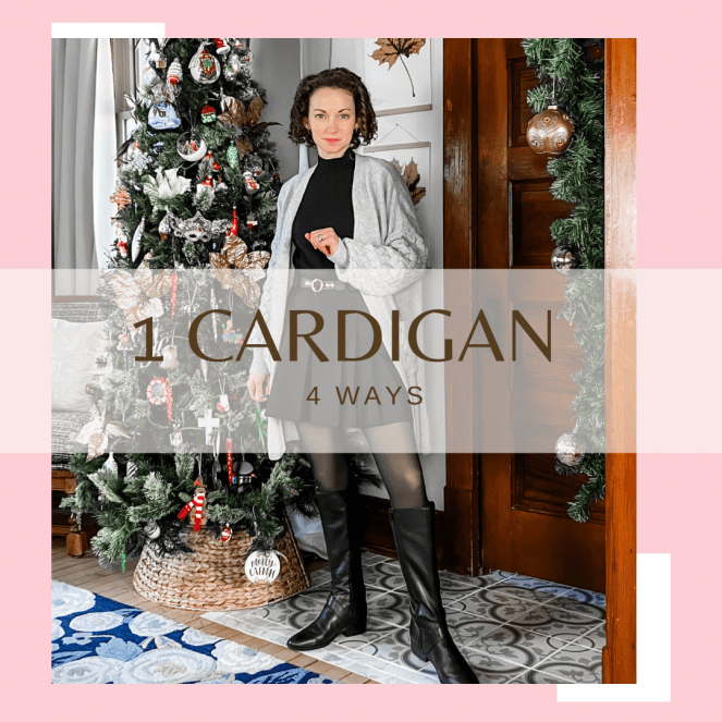Can you believe Christmas is next week? December is flying by so quick! I found this lovely cardigan that is a great wardrobe basic. It can be worn many different ways and would be a great addition to a capsule wardrobe! I styled this cardigan 4 different ways for winter.