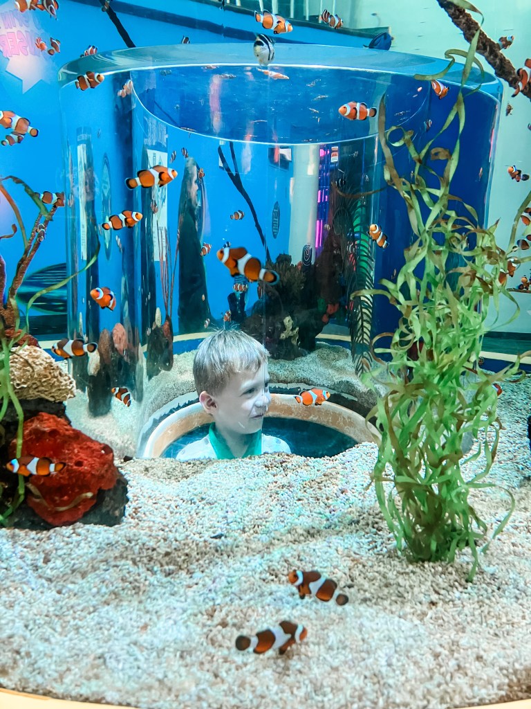 Tuesday: This was the day we explored downtown Gatlinburg. We spent the morning at Ripley’s Aquarium of the Smokies and I would highly recommend a visit here if you have kids. It is not inexpensive to visit but was a lot of fun and Clay loved it. Peter and I also thought it was fun to visit, especially the underwater tunnel. This aquarium was educational and very interactive for kids with a lot of hands on experiences like the sting ray pool, jelly fish station and a large play structure.