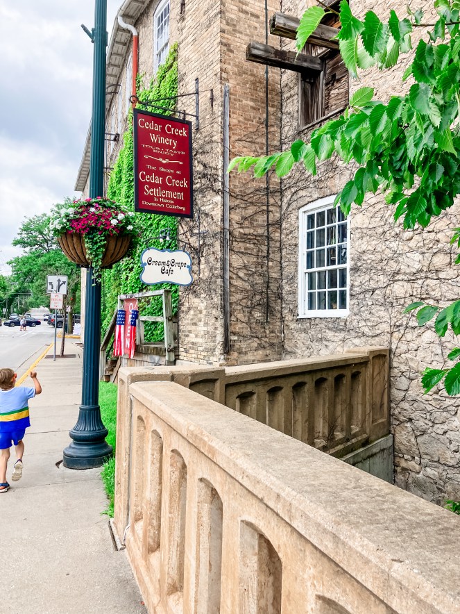 Cedarburg is known for its historic wooden covered bridge, one of the last ones in the state. After the kids were rested, we headed over to Covered Bridge Park to check it out! The bridge was cool to see and learn the history, but there are no play structures for kids so we did not stay long.