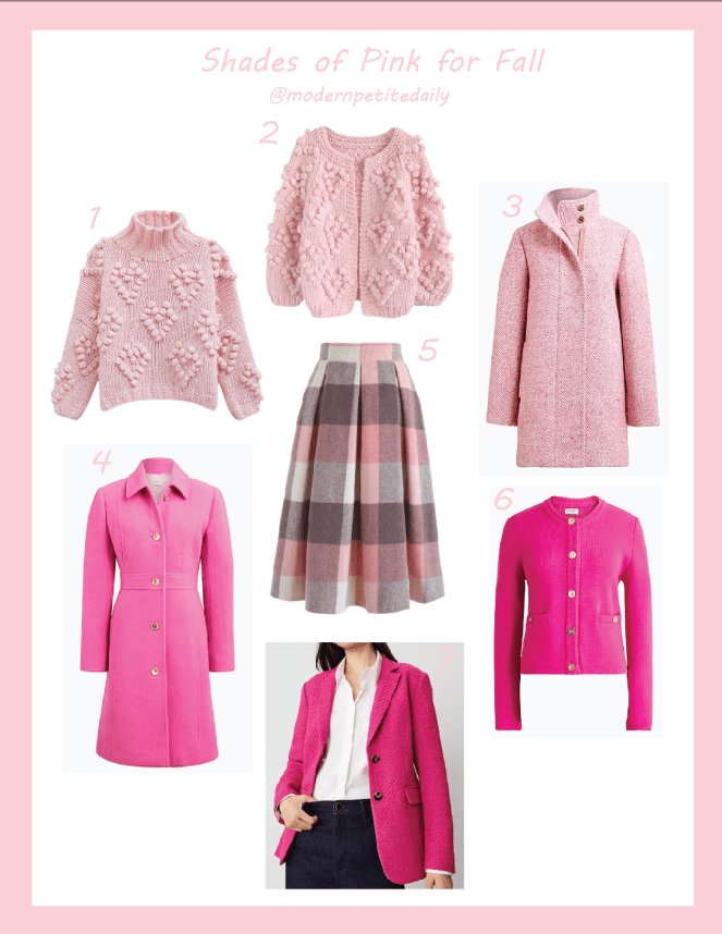 Fall is officially here and I am loving it! I love wearing the traditional colors of Fall but I also love taking non-traditional colors and wearing them this time of year. For example, pink is not a traditional Fall color but if you get it in a Fall texture, such as a chunky knit sweater or a wool coat, it instantly becomes perfect for the season! Here are my favorite pink styles for Fall.