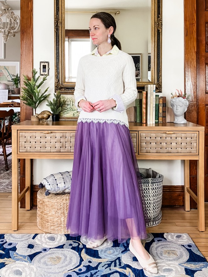 I had planned to wear this for church last week but ended up with the stomach flu! So I wore it during the week on a mild Spring day for school drop off/pickup.