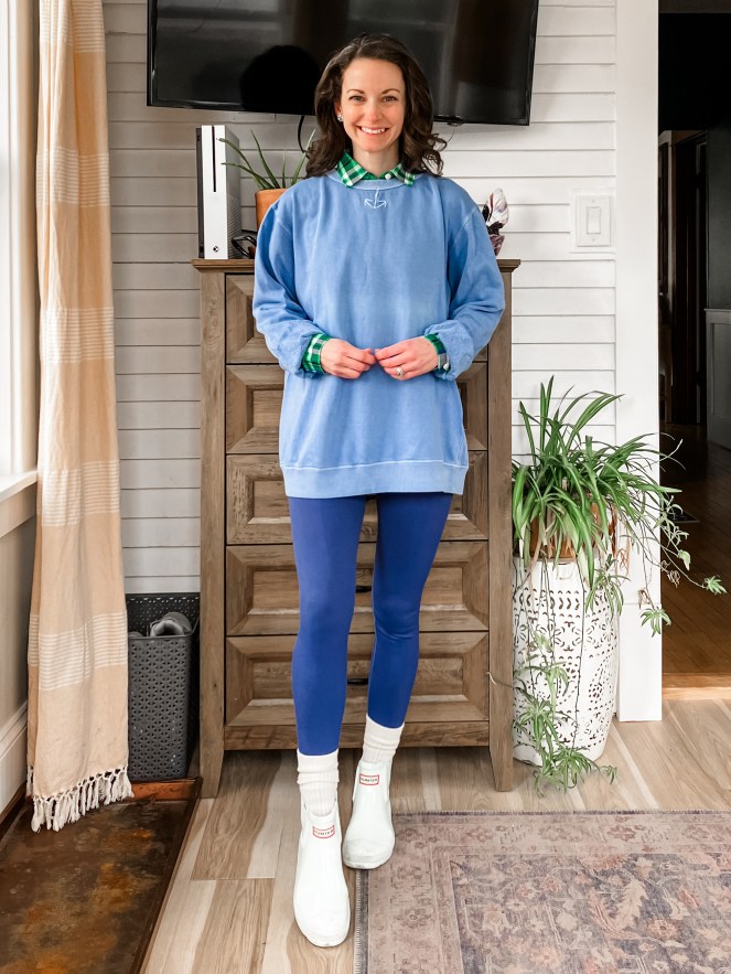 I wore this on a cold, rainy Spring day for school drop off/pickup.