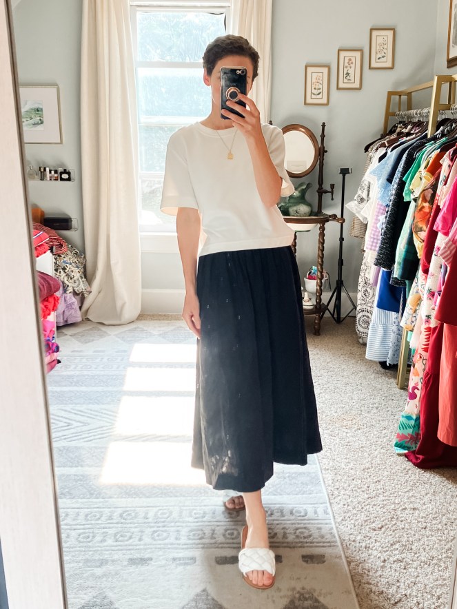 Sunday: I wore this casual outfit after church featuring a crop t-shirt and linen skirt.
