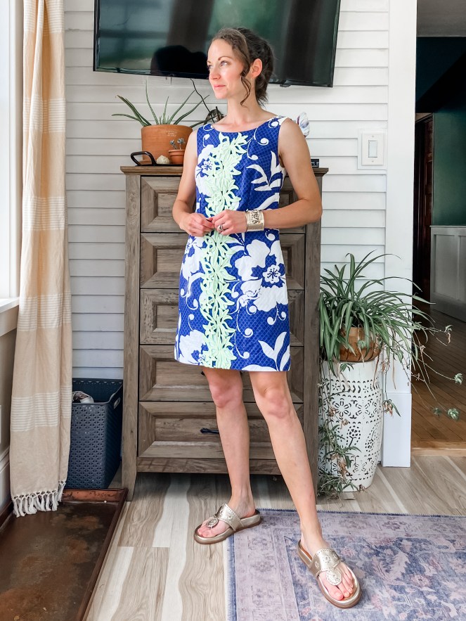 #3. Classic preppy is combined with these Jack Rogers Sport Sandals and an old Lilly Pulitzer shift dress of mine (similar here). I also chose to wear this old Lilly Pulitzer cuff bracelet (similar here) that I have had for over 10 years. It seemed perfect with this outfit!
