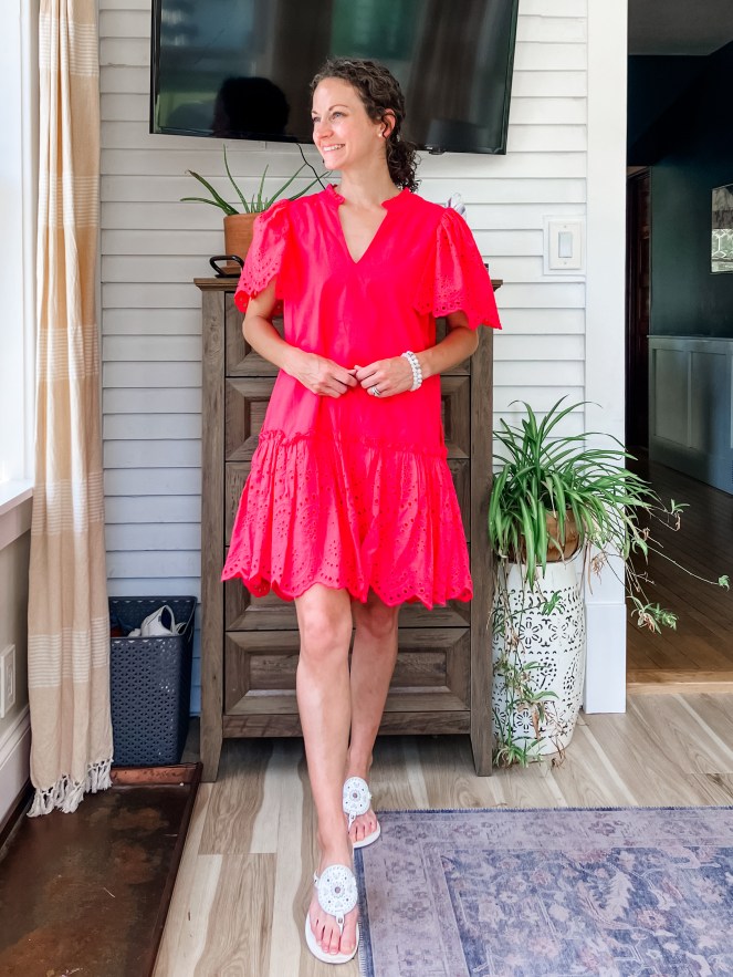 Day 1: I wore this cute Pink Moon Bay dress (similar here, mine is old) for the drive up to the house we rented. It’s comfortable and perfect for the 90 degree day we had. I also wore this to dinner that night.