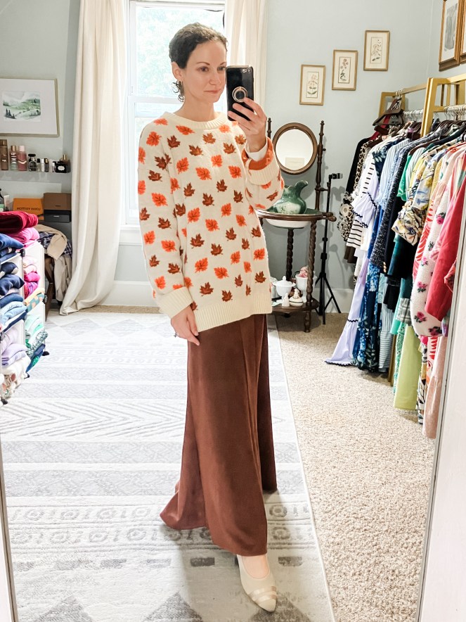#3. I get so many compliments every time I wear this sweater! I love how the oversized fit pairs with this faux suede skirt.