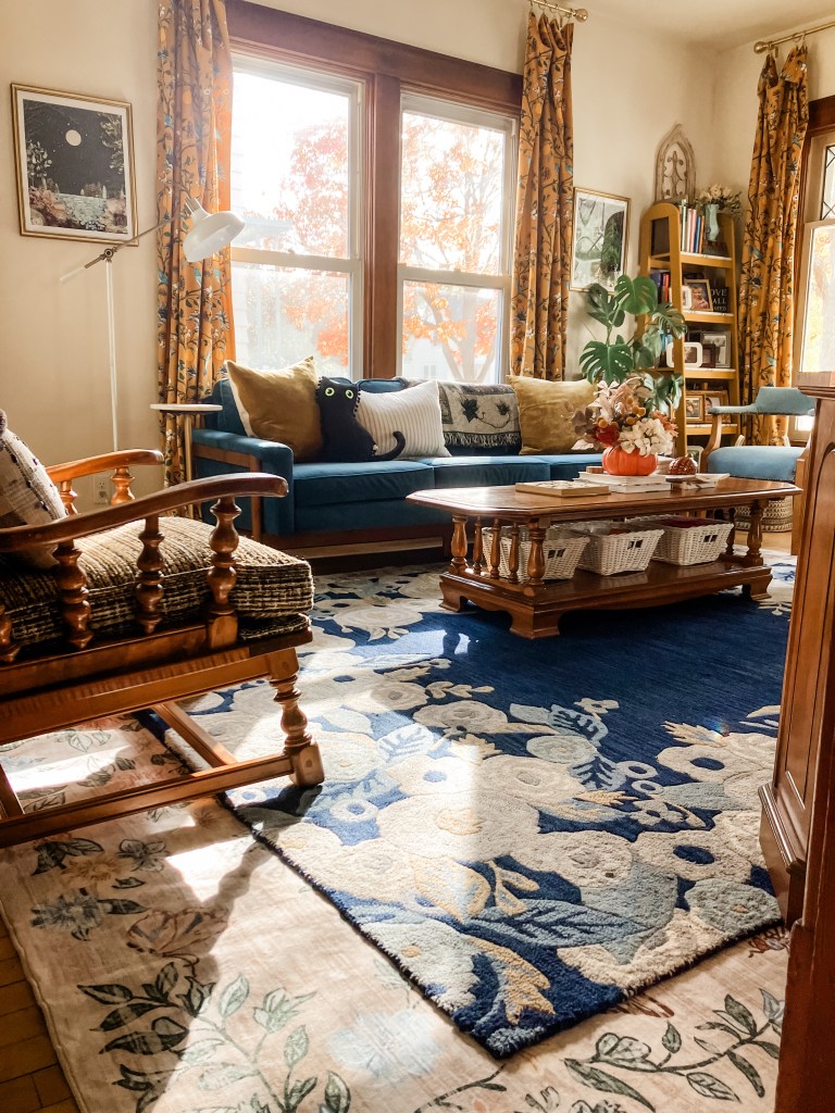I have always been drawn to playing with colors and patterns, whether that be in my clothes or in a space. I am definitely a maximalist at heart but can still appreciate minimalist design. That is why I love to layer rugs. I love mixing the patterns in fun, new ways and creating an even cozier space while I’m at it (just imagine how nice it feels to walk on two rugs)! Here are a couple tips to creating your own perfect space by layering rugs.