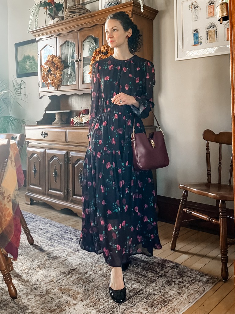 Or maybe you would prefer to wear a dress? Dresses are always very comfortable and look great! You could pair a black floral dress with a coordinating bag and black flats, a sweater dress with a matching bag and gold flats, or an autumn tone floral dress with a coordination bag and neutral shoes!
