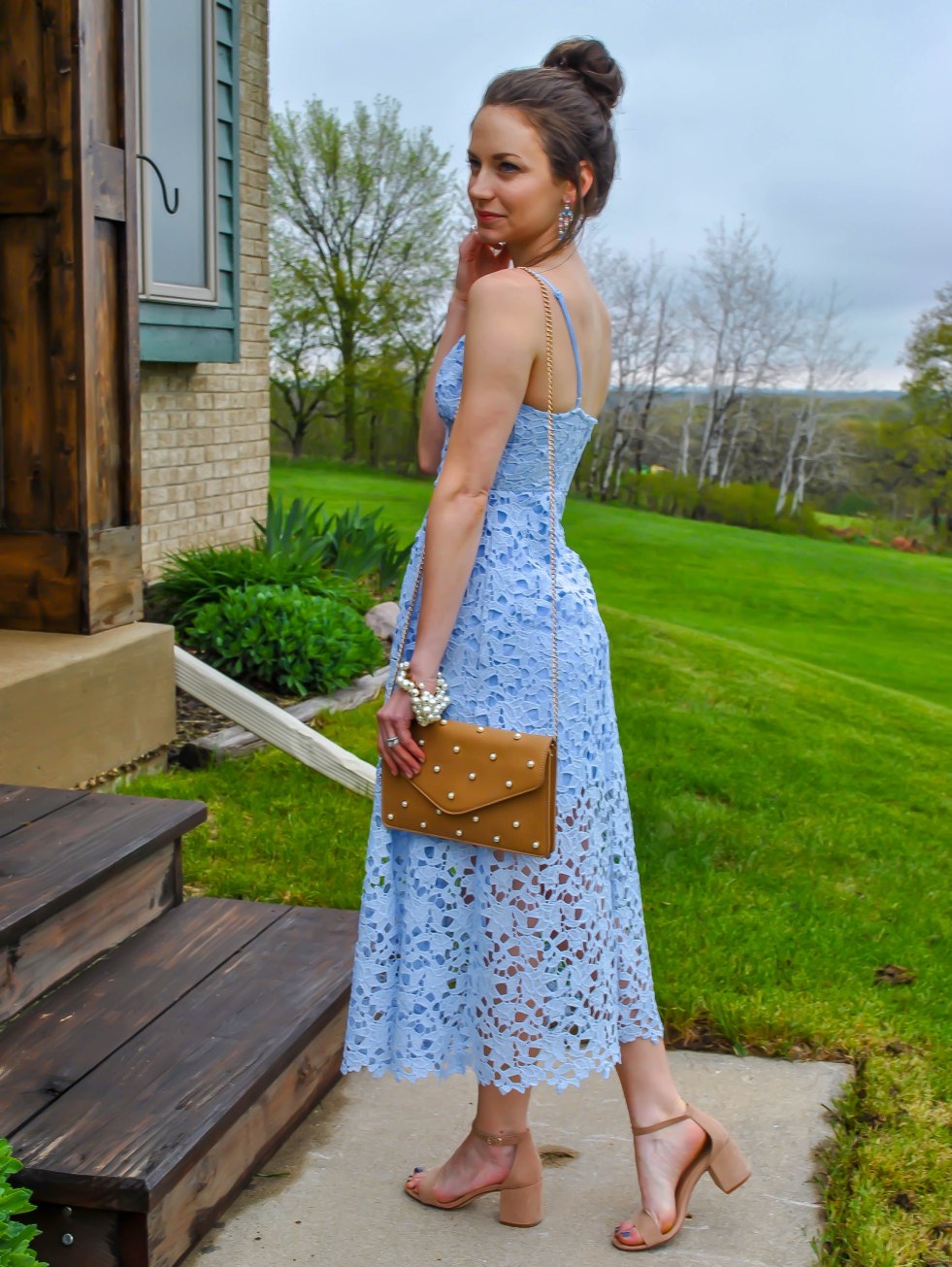 ASTR The Label Lace Midi Dress Petite Review//Wedding Guest Attire Roundup